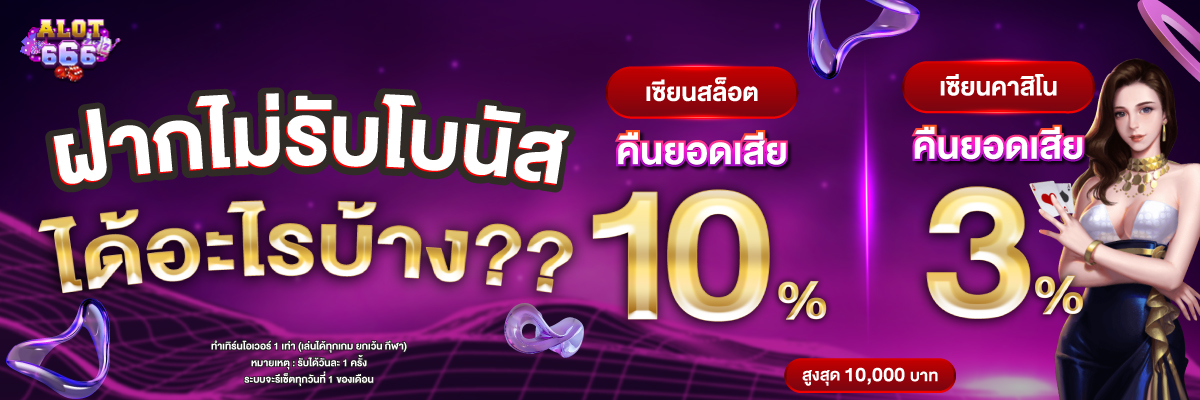 1. คืนยอดเสีย 10%: ผู้เล่นเก่าที่เสียเงินเสียทองสำหรับเพื่อการพนันสามารถรับโบนัสคืนยอดเสีย 10% ทุกเดือน ช่วยให้คุณสามารถกลับมาลุ้นรางวัลใหญ่ได้อีกรอบ