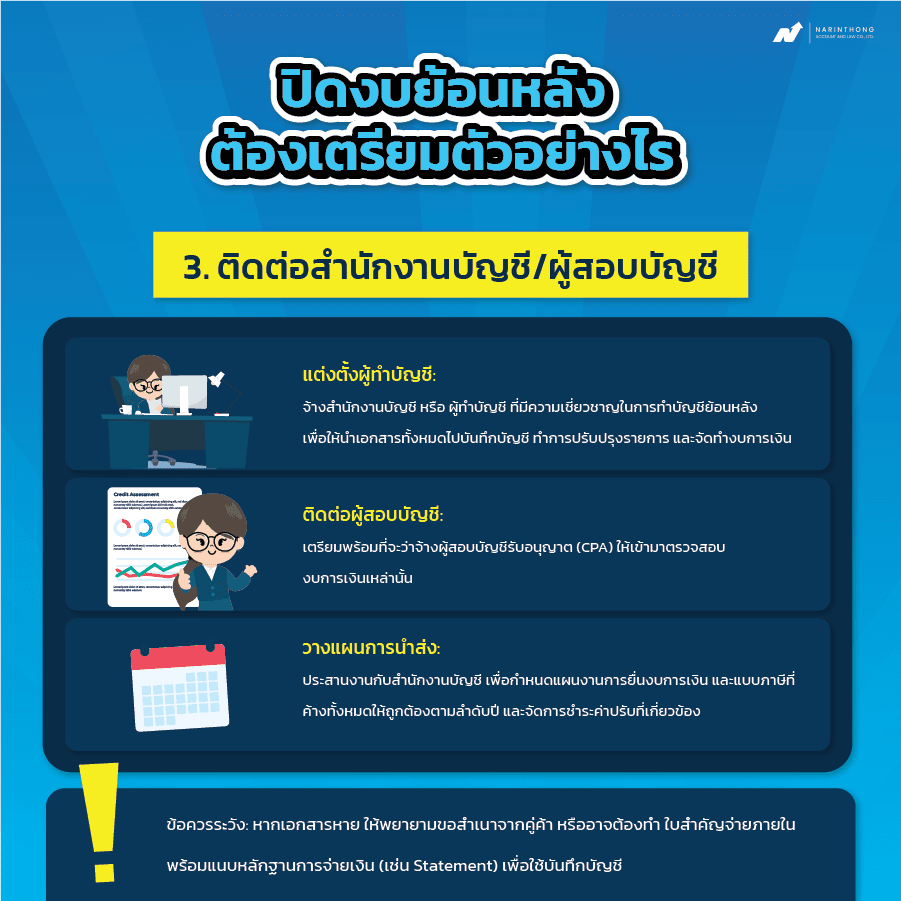 - ประสานงานเอกสารเพิ่มเติมในกรณีที่ต้องมีการตรวจสอบ