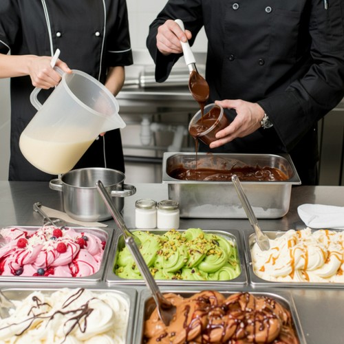 - การผสมผงไอศกรีมกับส่วนผสมอื่นๆให้ได้สัดส่วนที่ลงตัว